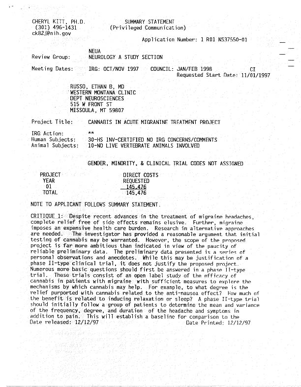 December 12, 1997 - Notification of Scientific Review of Action - p.1
